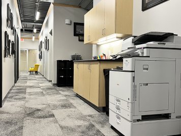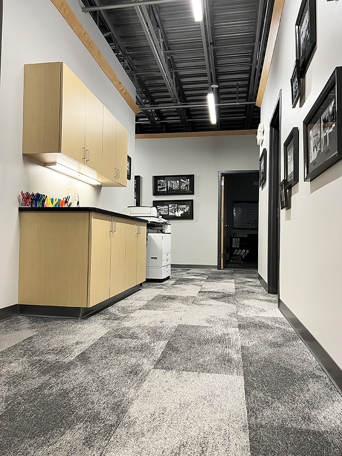 Borton Construction updated our own office by updating the color palette with new flooring, paint and furniture. We also designed and added new signage behind our front desk and printed and re-framed past project photos for the gallery walls.